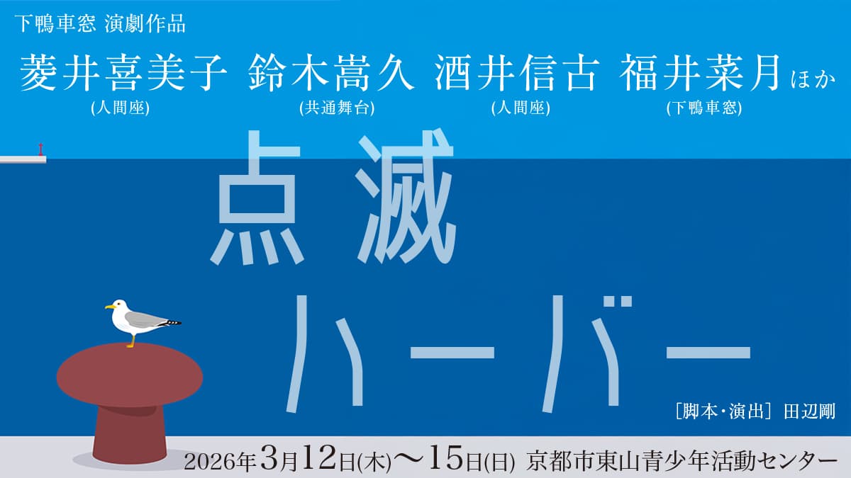 下鴨車窓は現代演劇の作品を創作・公演する団体です。2004年に設立、代表は京都を拠点に活動する劇作家、演出家の田辺剛です。従来メンバーは田辺一人のみでしたが2020年4月より劇団化。公演活動は地元のみならず国内各地を巡演、2015年には初めて香港とマカオでの海外公演を果たしました。